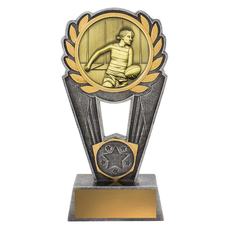 Elegant design in this 'Polaris' series showcases a finely designed metal insert representing your sport or activity. Same prestige metal inserts to be used in other trophies, awards and medals to create a versatile range of awards.
