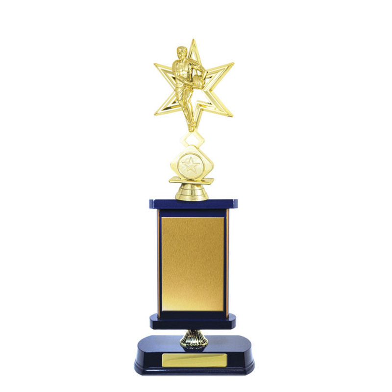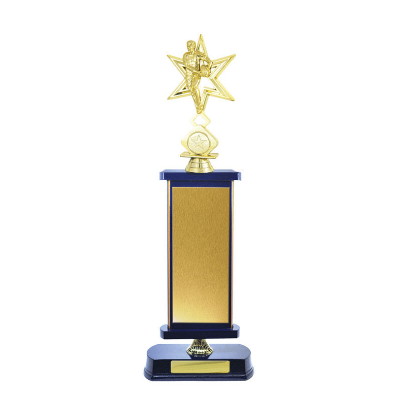 This award is part of the 2025 Evaton Range, exclusively at Brighton Trophy Centre. Colour: Blue-Gold. Material: Plastic-Timber. Height: 380.0mm. Perfect for celebrating achievements in Timber Trophies events. Engraving available – contact us to personalise your award.