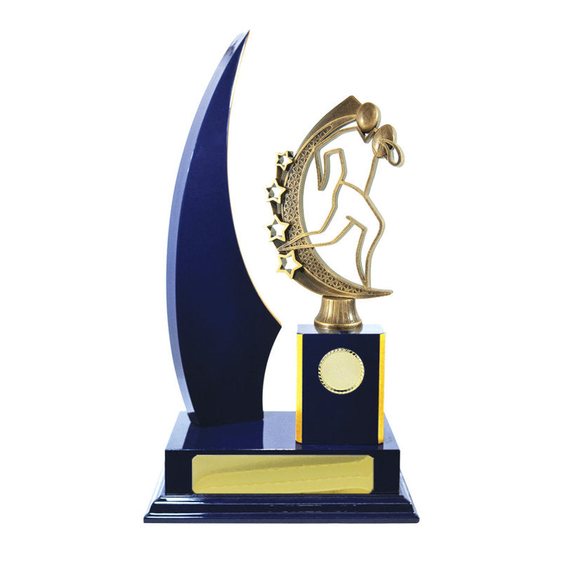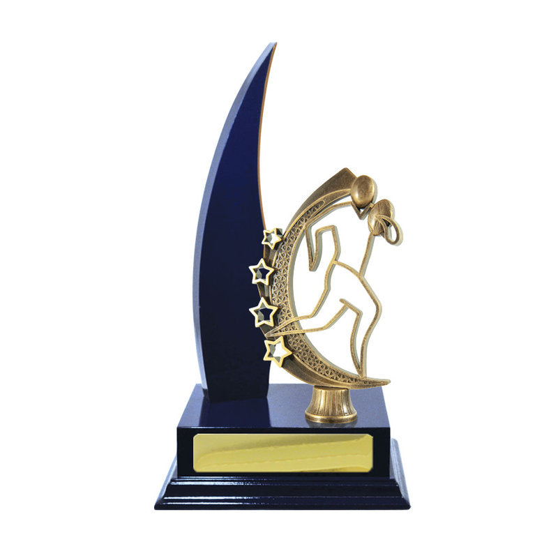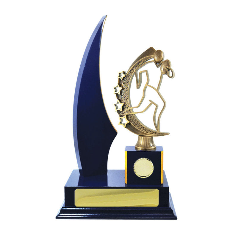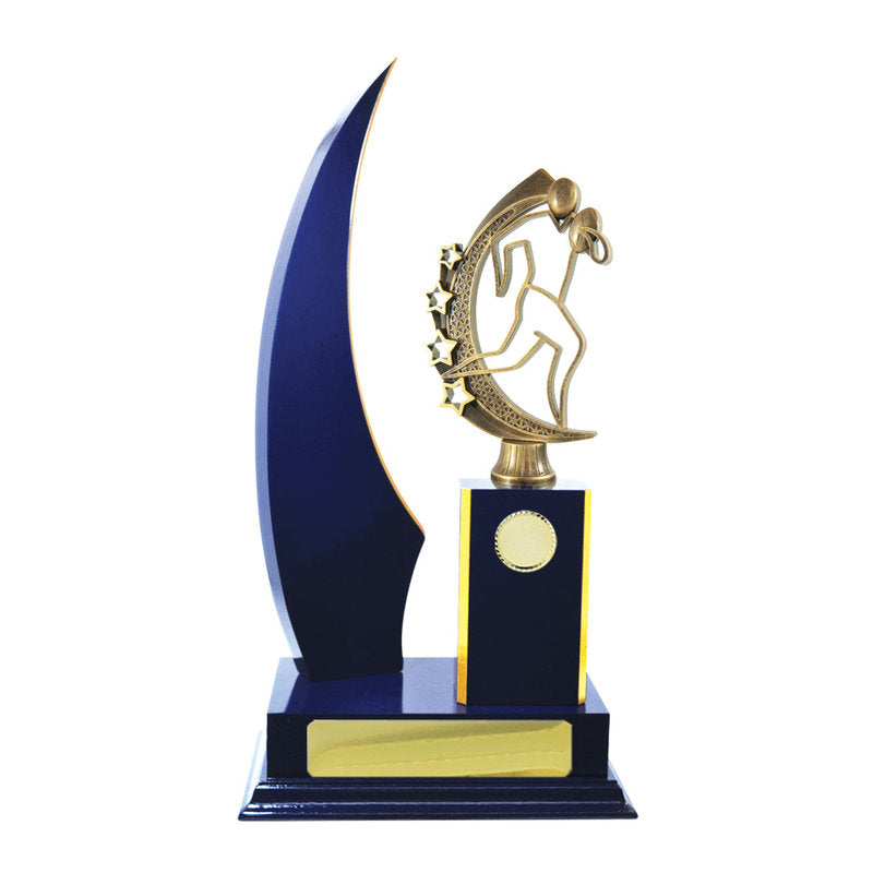This award is part of the 2025 Evaton Range, exclusively at Brighton Trophy Centre. Colour: Blue-Antique Gold. Material: Plastic-Timber. Centre Holder: 25. Height: 345.0mm. Perfect for celebrating achievements in Timber Trophies events. Engraving available – contact us to personalise your award.