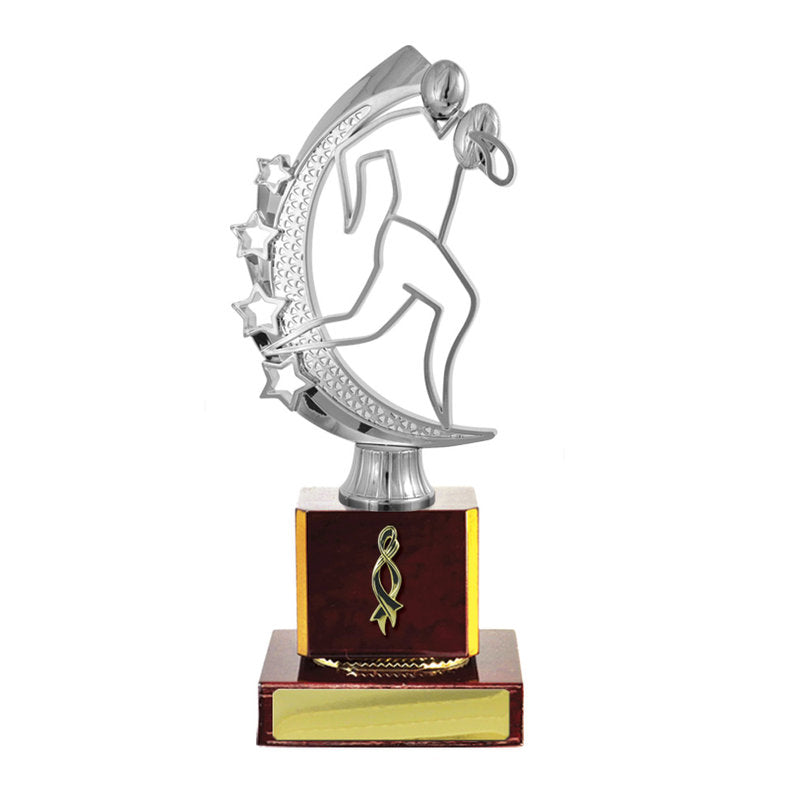 This award is part of the 2025 Evaton Range, exclusively at Brighton Trophy Centre. Colour: Cherry-Silver. Material: Plastic-Timber. Height: 223.0mm. Perfect for celebrating achievements in Timber Trophies events. Engraving available – contact us to personalise your award.