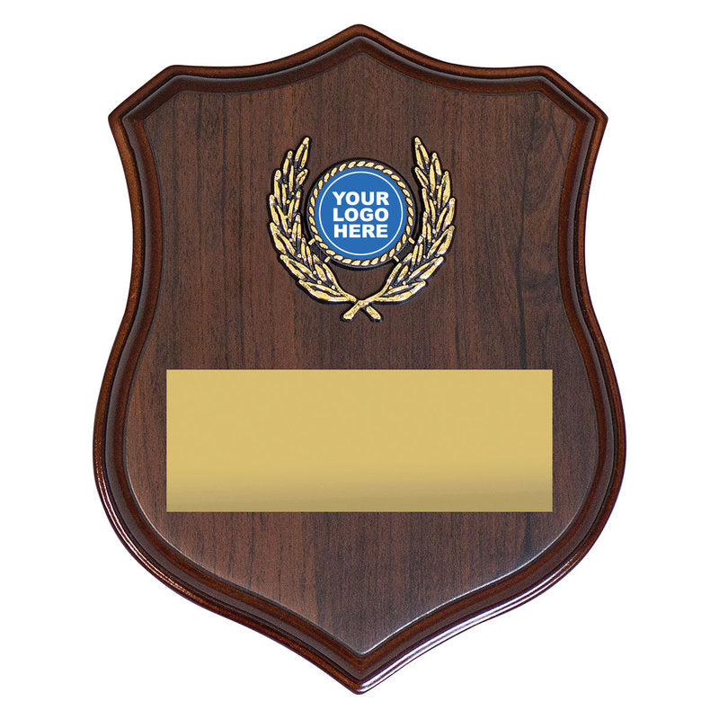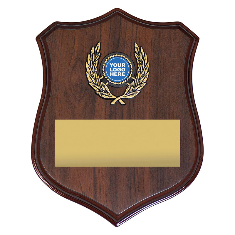 Affordable shield awards with central space for your custom design or logo. Space for engraving. Shields supplied with stands.
