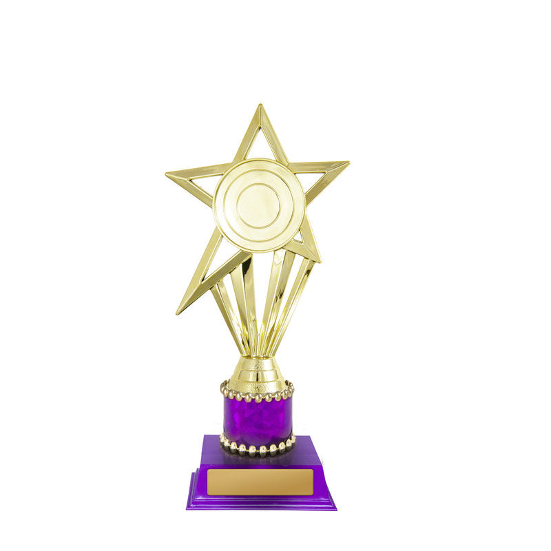 This award is part of the 2025 Evaton Range, exclusively at Brighton Trophy Centre. Colour: Gold/Purple. Material: Plastic-Marble. Centre Holder: 50. Height: 215.0mm. Perfect for celebrating achievements in Traditional Trophies events. Engraving available – contact us to personalise your award.