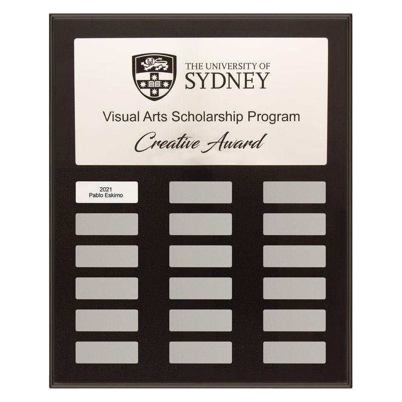 All Assembly Plaques include plate place holders allowing for ease of future use. Simply place future plates over the perfectly aligned place holders.