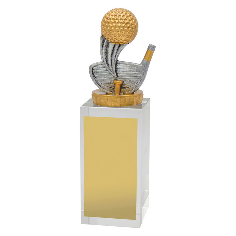 Series of affordable crystal blocks that feature charming antique silver top for your sport or activity. An appealing award alternative to consider for your event or presentation.