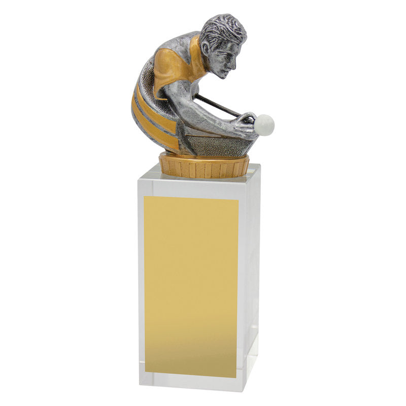 Series of affordable crystal blocks that feature charming antique silver top for your sport or activity. An appealing award alternative to consider for your event or presentation.