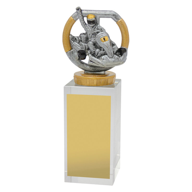 Series of affordable crystal blocks that feature charming antique silver top for your sport or activity. An appealing award alternative to consider for your event or presentation.