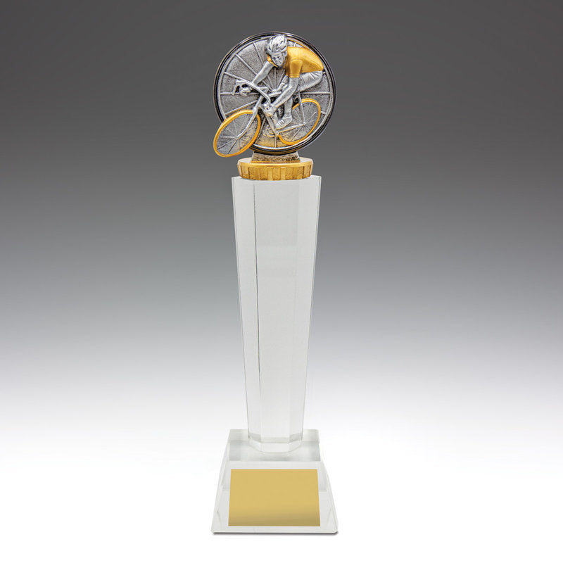 Brilliant trophy series for top performers, the Crystal Pedestal Series is available in 3 sizes. The crystal is finished with charming antique silver Cycling motif top. Prestige trophies suited for Cycling events and competitions and will be supplied in premium presentation gift boxes.