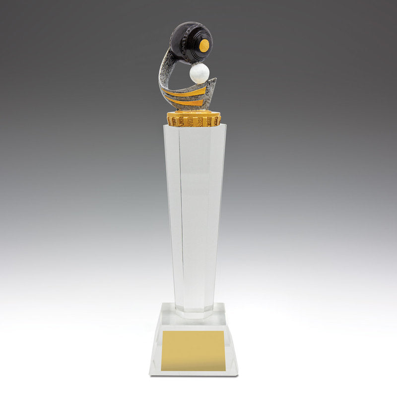 Brilliant trophy series for top performers, the Crystal Pedestal Series is available in 3 sizes and completed by the charming antique silver Lawn Bowls top. Prestige trophies will be supplied in a premium presentation gift boxes.