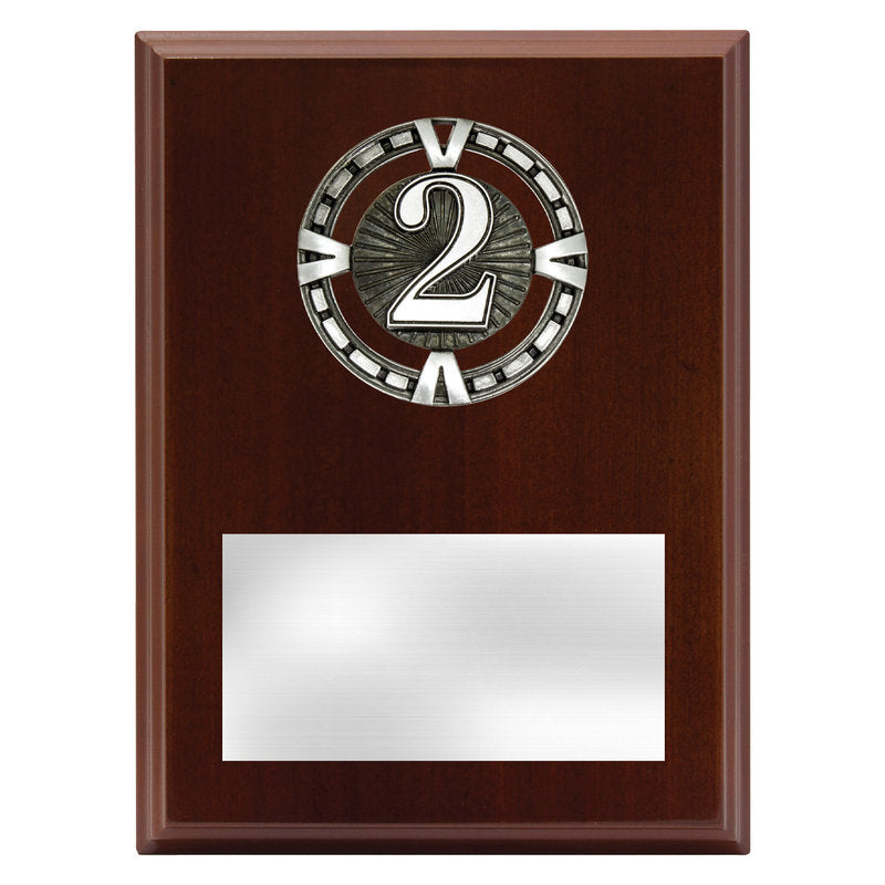 Popular walnut plaque features brilliant Varsity medals create a convenient yet premium award.