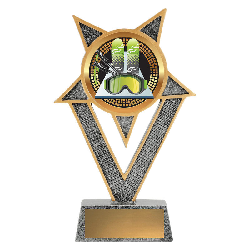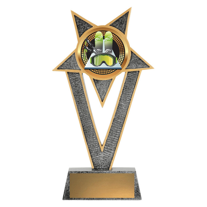 Star inspired trophy series, the Ventura offers prime position for colour insert to represent your sport.