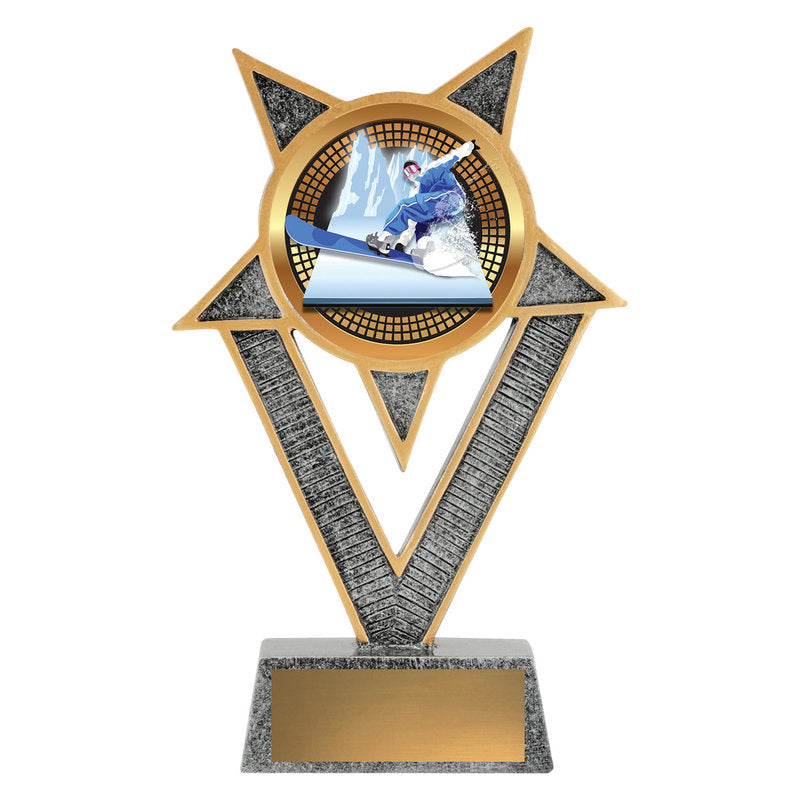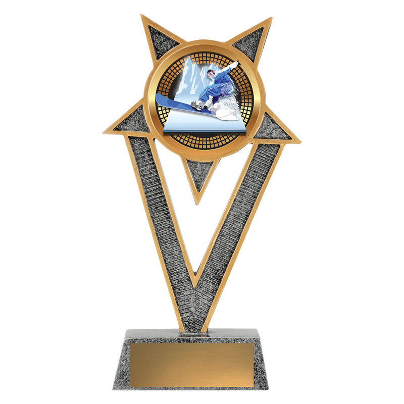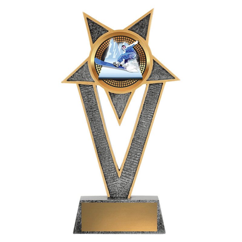 Star inspired trophy series, the Ventura offers prime position for colour insert to represent your sport.