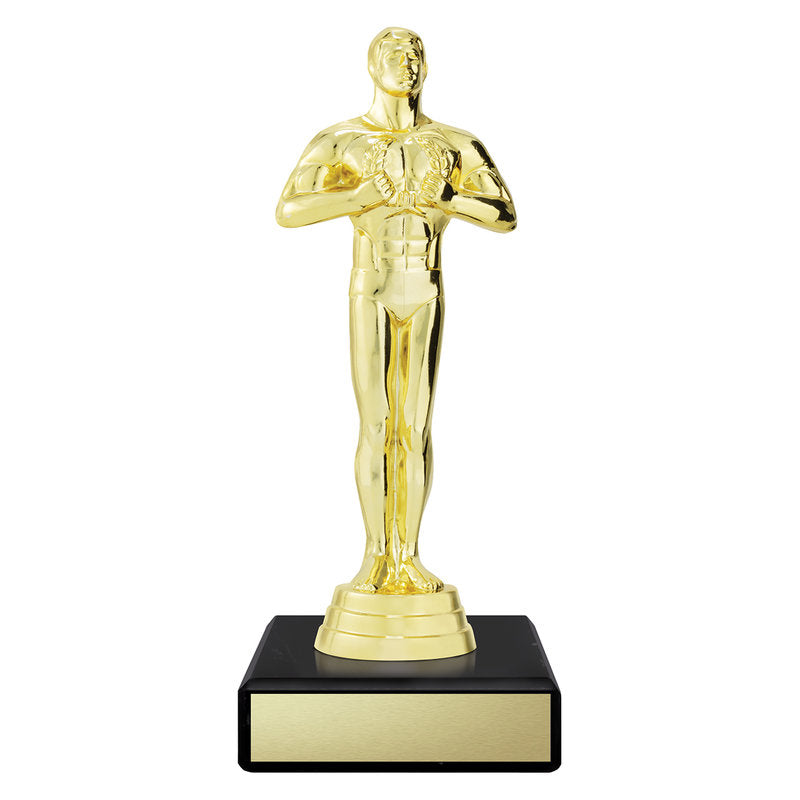 The traditional bright gold achievement icon is a versatile trophy option for different award categories. Effective black base provides plenty of space for your engraving requirements.