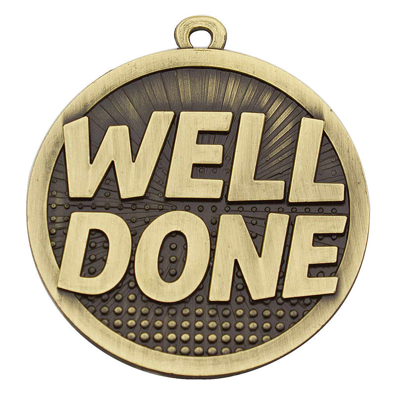 WatchWord series of medals comprises of several different designs featuring bold words and phrases. The Well Done version is perfect for participant and encouragement style awards. Medal ribbons available in all colours.