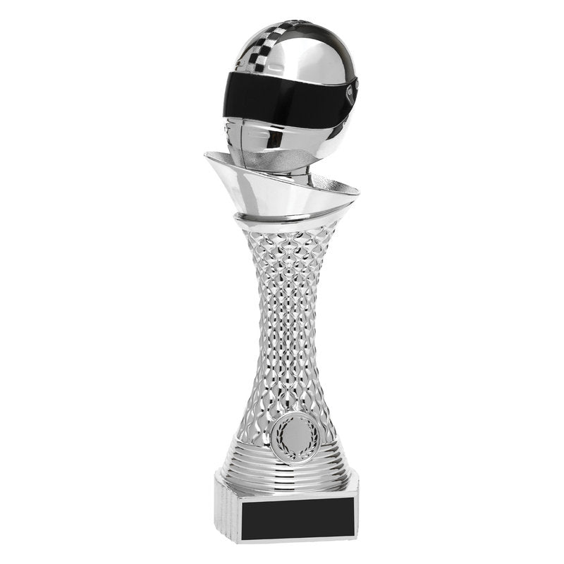 The 'Vogue' tower - for Motorsport - is an innovative award that features a brilliant 3D silver / black helmet top. The heavyweight design of this Tower series offers extra weight and prestige. Available in 3 fantastic sizes.